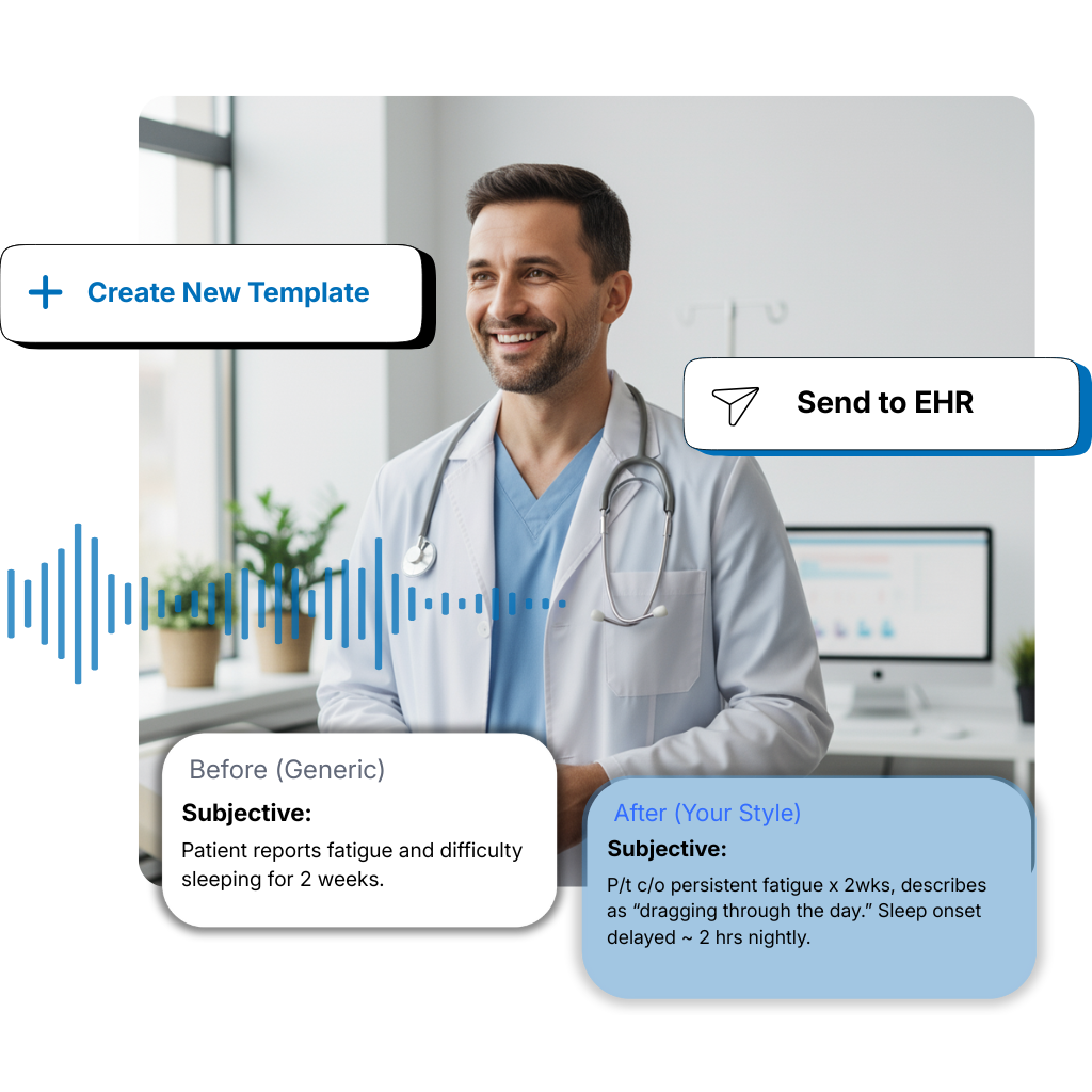 Our AI learns your clinical style and terminology instantly, ensuring notes are structured exactly how you like them.